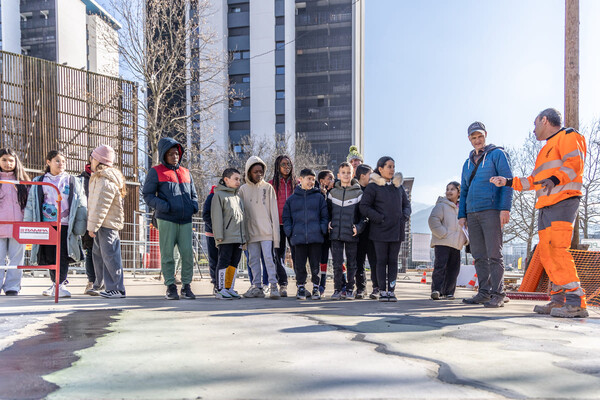 En plus d’être durable et écoresponsable, ce projet et aussi participatif, puisque l’artiste n’a pas travaillé seul. En effet, les élèves des écoles du Verderet et du collège Olympique ont participé à la création de cette œuvre et triant, concassant et tamisant des gravats. Les étudiants de l’école d’architecture, de l’institut d’urbanisme, ainsi que des agents de la Métropole ont également pris part à ce projet. L'oeuvre de tout un quartier !